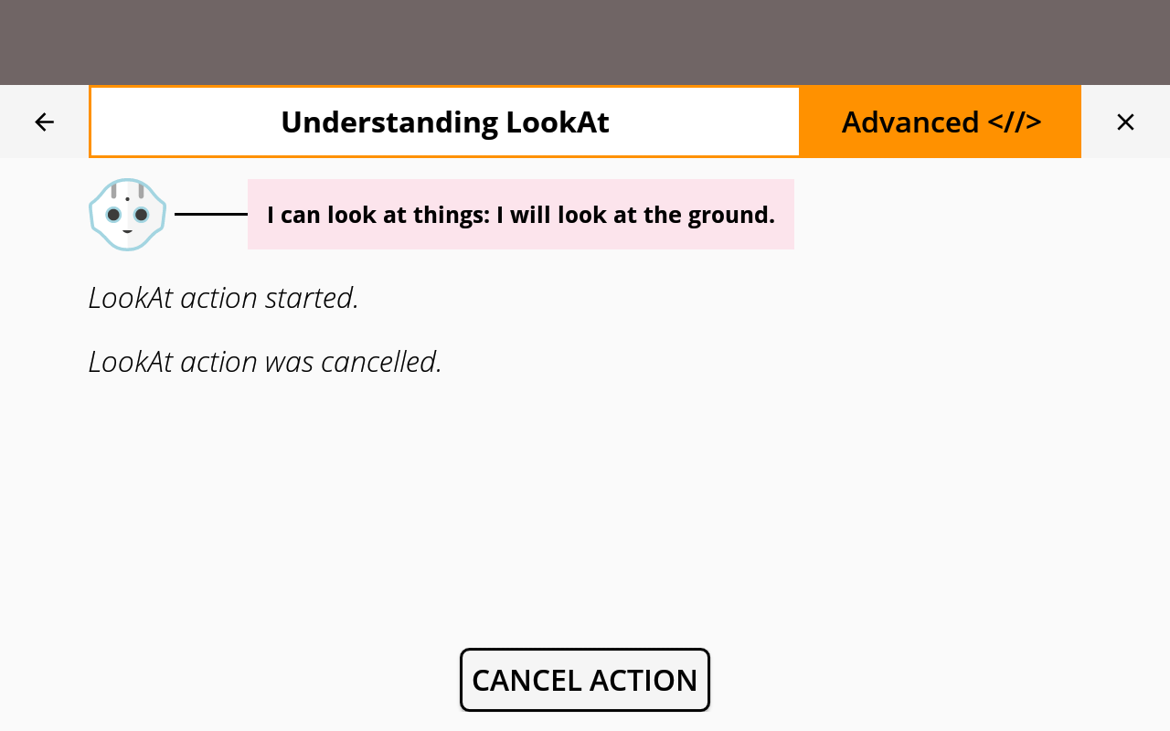lookAt.addOnStartedListener(() -> Log.i(TAG, "LookAt action started."));